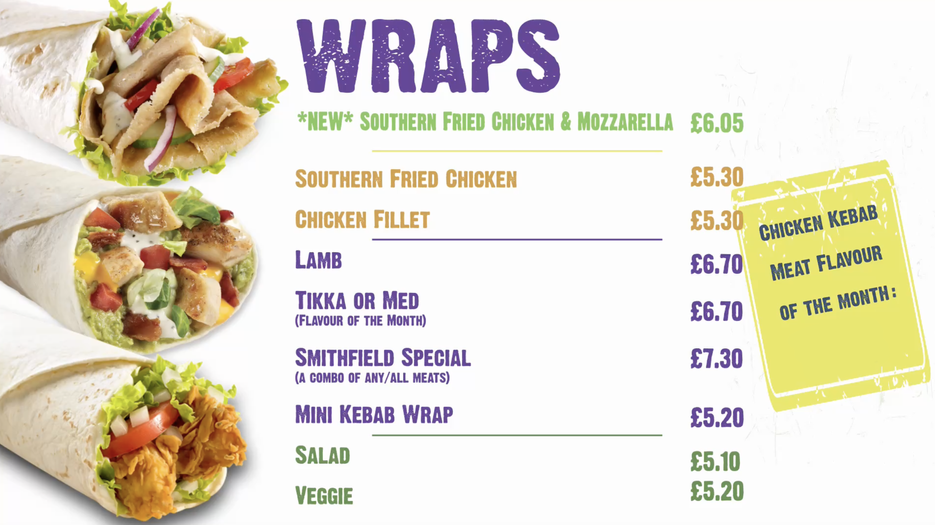 - We have four flavours of kebab meats to choose from (One flavour changing monthly - see here for Flavour of the Month) with an amazing choice of freshly cut salad and long list of sauces to make each kebab unique to your taste.